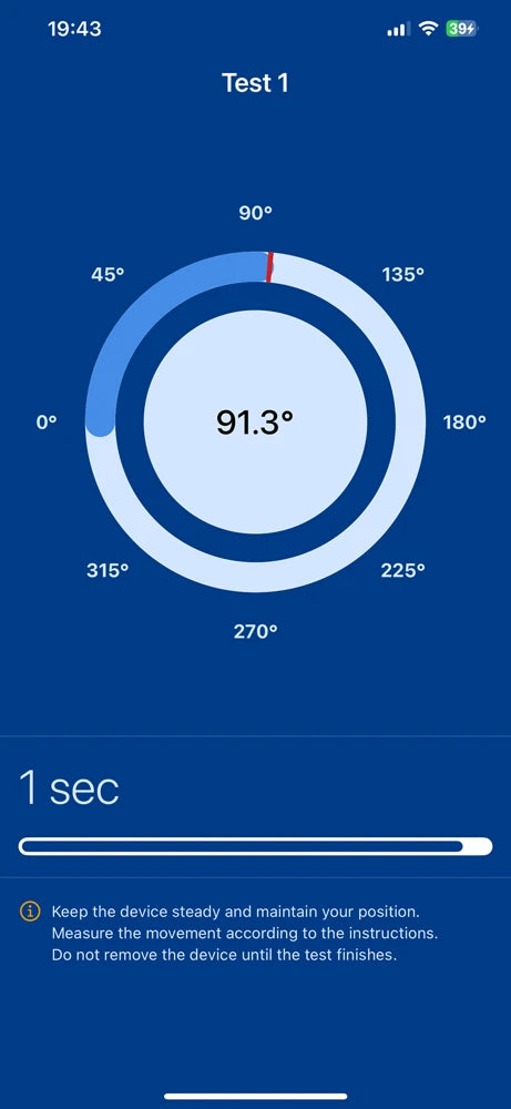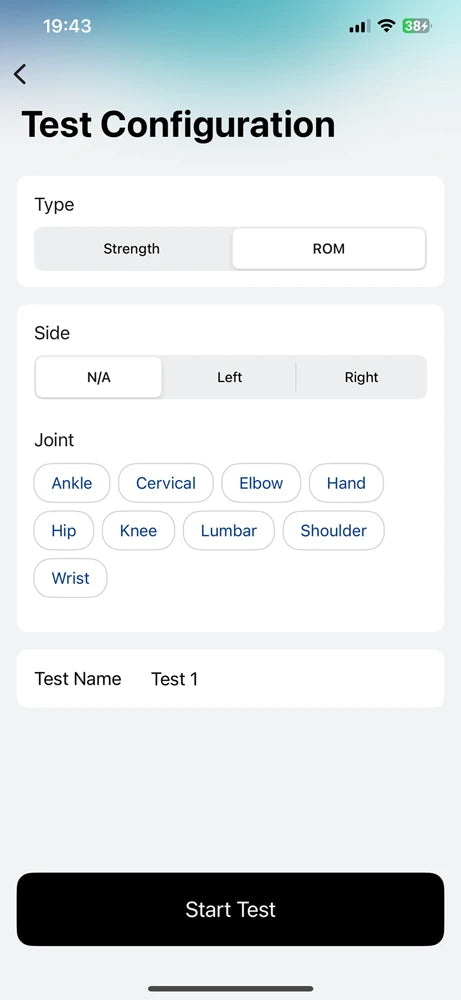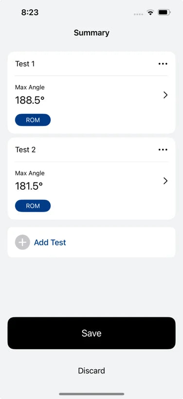b. Range of Motion Measurements: ROM tests with left, right and N/A side options to obtain angle measurements in 3D space.