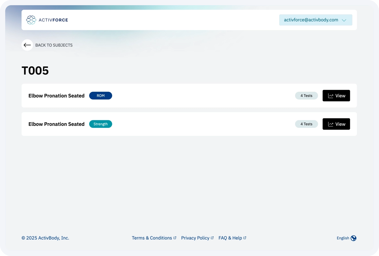 The ActivForce 2 system is intended to be used by trained adults such as licensed healthcare professionals (e.g., physical therapists, physicians, chiropractors), rehabilitation and sports medicine clinicians, and other qualified personnel who are experienced in musculoskeletal assessment and have received instruction in the proper use of the device and app.